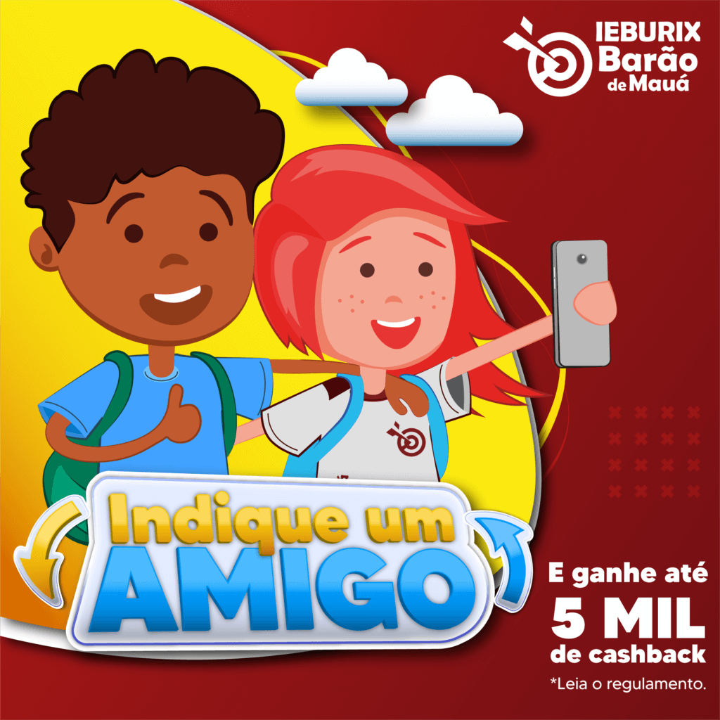 Todos os anos o IEBURIX Barão de Mauá, recebe o reconhecimento de seus alunos e familiares ao indicarem seus amigos para estudarem em nosso Colégio. Nada mais justo do que retribuir em “CASHBACK” cada indicação que for efetivada em matrículas para 2022. Você indica a gente liga, seu amigo faz a matrícula e você ganha “CASHBACK”